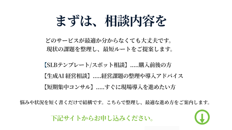 【SLBテンプレート/スポット相談 申込み 】 【生成AI 経営相談 申込み】