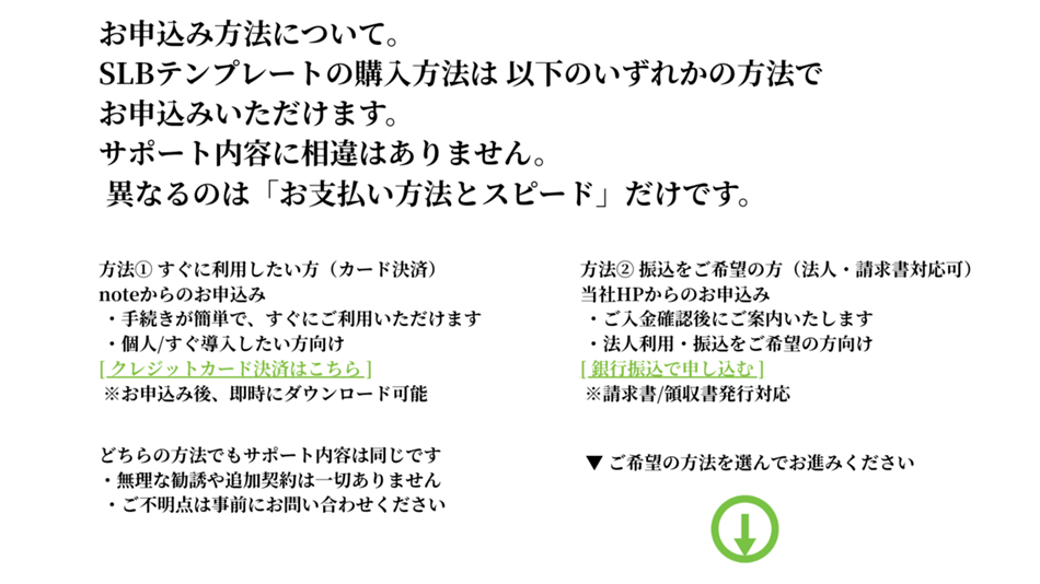 snsのnoteの下記記事からSLBテンプレート資料一式を購入可能です。